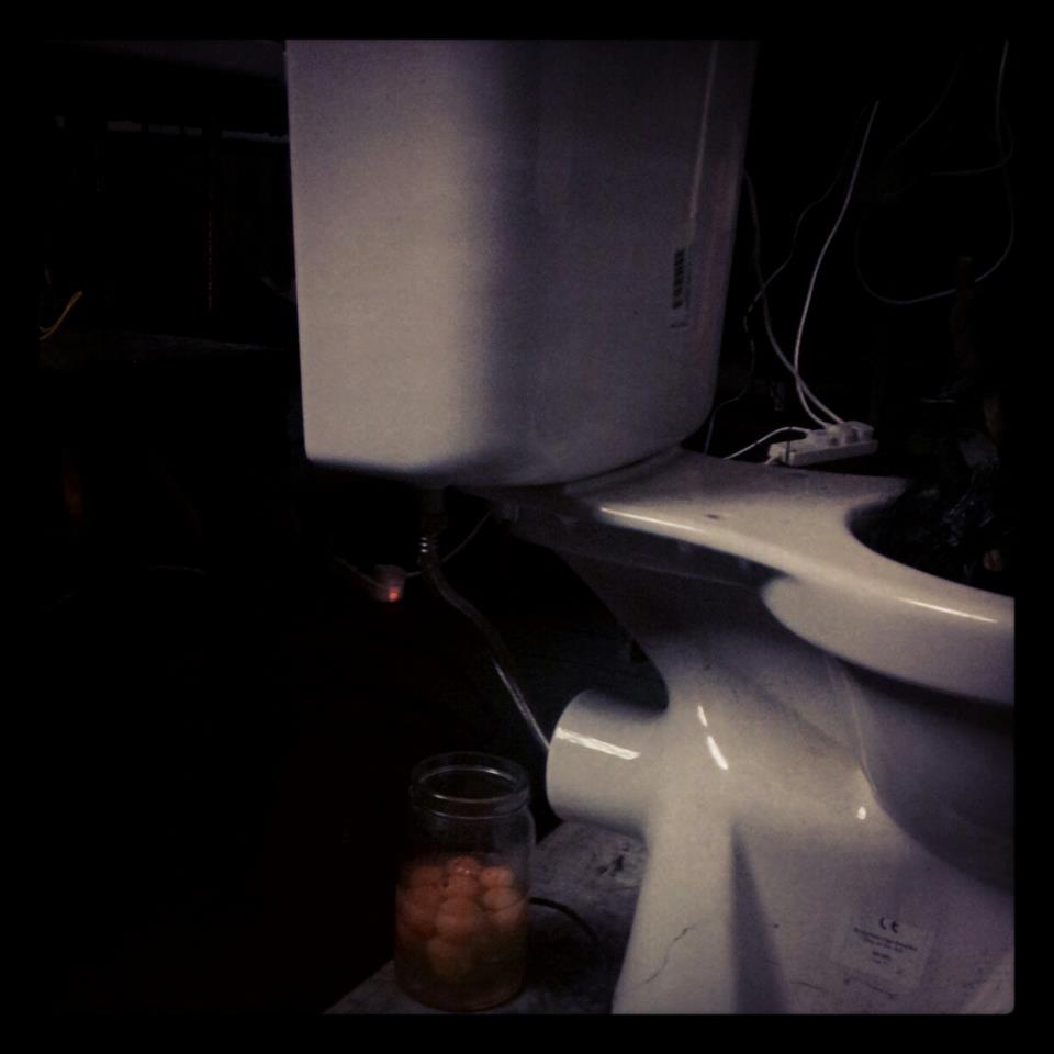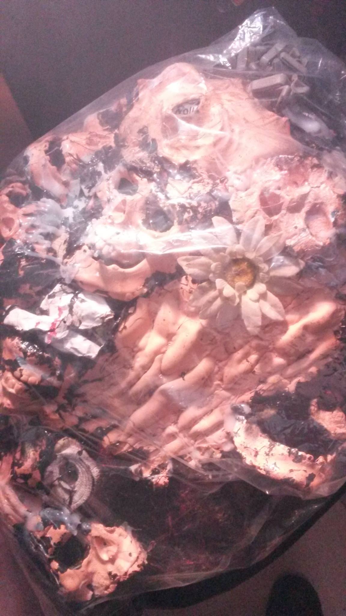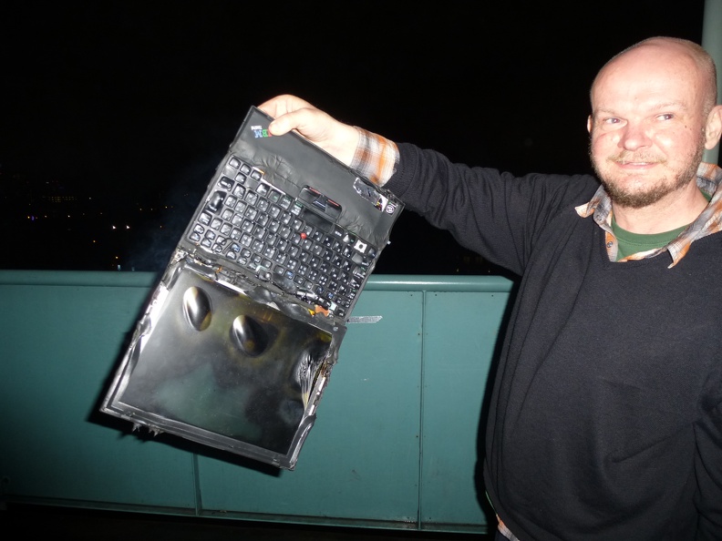 Jonathan Kemp with laptop fried in acid, 13/04/2013, London. Unkown photographer.